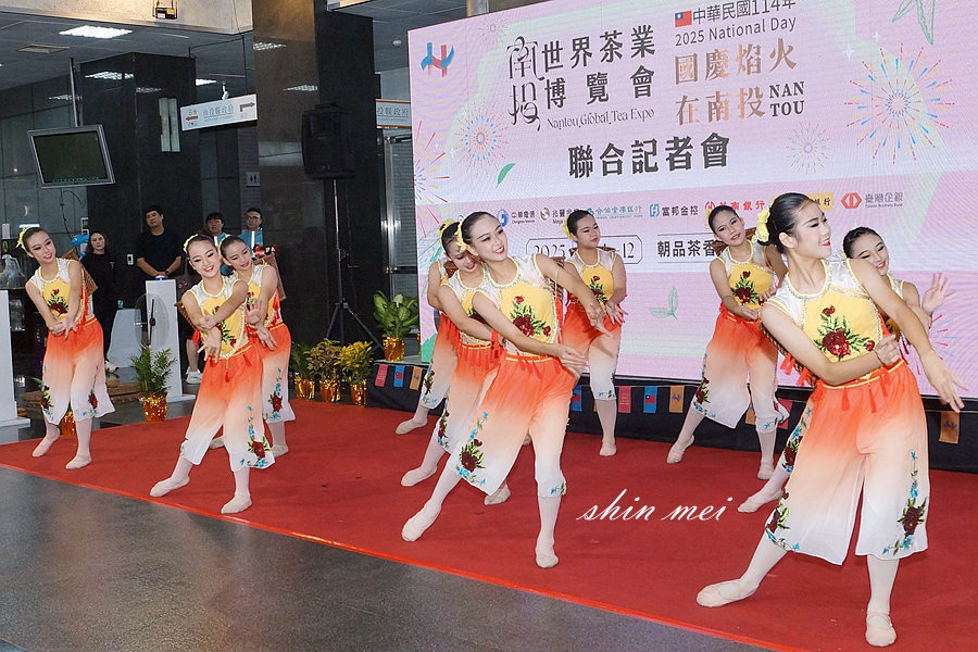 記者會由南投民族舞蹈團帶來精彩的茶舞表演,接著則是邀請到知名DJ MR.GIN指導許縣長操控DJ混音台,秀出一小段焰火當晚將要演出的曲目-南投縣歌混聲電音版,並透過大螢幕播放3分鐘的國慶焰火模擬動畫影片,讓大家先睹為快。