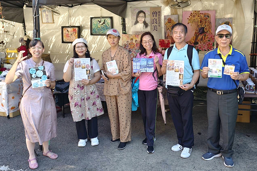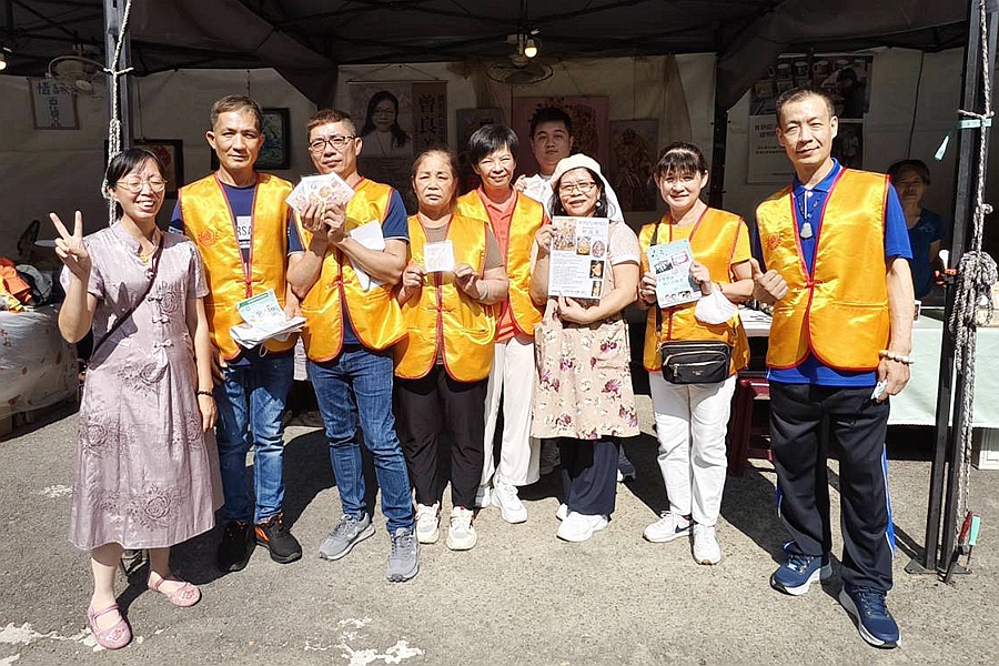[新媒社 記者張銀澤/台中報導] 一年一度的 八八蟠桃開心佛市集,格外別具意義。這片場地,正是當年在潭子摘星山莊古蹟的第二進,龍邊的牆上:八仙過海獻壽紅磚雕作前面,坐著虔誠許願的,希望能有一個場地,能讓我們的古蹟市集宣傳古蹟,邀請大家蒞臨參觀。
