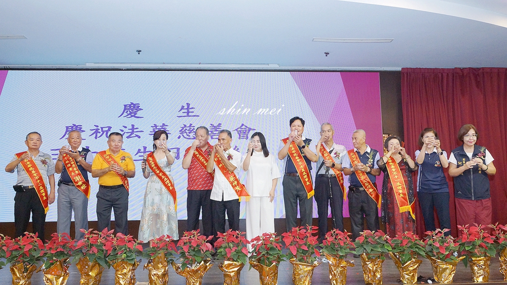 [新媒社 記者張銀澤/南投報導] 南投中寮鄉台灣省「法華慈善會」 18日晚間在南投市南島婚宴館舉辦30周年慶晚宴,在會旗進場後,緊跟歷任理事長進場,進入高潮,包括立委馬文君, 羅美玲.草屯鎮長簡賜勝,中寮鄉長廖宜賢及多方民代到場祝賀,活動由現任理事長林賢沛宣布晚宴正式開始。