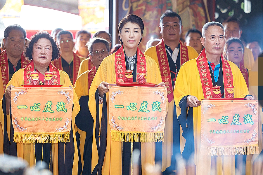 [新媒社 記者張銀澤/南投報導] 2025南投名間鄉松柏嶺受天宮26日舉辦「南投縣宗教文化系列活動—114年北極玄天上帝飛昇得道全國聯合慶典」,來自全台逾200尊玄天上帝神尊齊聚,盛大舉行聯合祈福科儀。縣長許淑華、受天宮主委陳登岳、立委游顥、縣議員蔡宗智、張婉慈、張秀枝、名間鄉長陳翰立等人,與信眾同心祈求風調雨順、國泰民安。