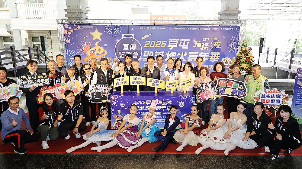 17日在草屯鎮公所舉辦的記者會,由薪傳舞蹈團小朋友的精彩表演揭開序幕,草屯鎮長簡賜勝偕代表縣長許淑華出席的縣府觀光處長陳志賢,以及縣議員廖梓佑、林友友、莊士傑等佳賓,共同宣示了這場聖誕煙火嘉年華的三大亮點,包括點燈儀式、群星演唱會以及連續三場的煙火大秀。
