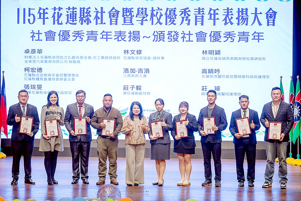 [新媒社 記者張銀澤/花蓮報導] 115年花蓮縣政府、吉安鄉公所、立法委員傅崐萁服務處、青年節籌備委員會、花蓮第二信用合作社、花蓮縣救國團之友聯誼會及救國團總團部共同指導,花蓮縣救國團及幼獅青年服務協會共同主辦的「115年花蓮縣社會暨學校優秀青年表揚大會」,於28日在花蓮縣吉安鄉客家文化館隆重舉行。今年以「夢想成形 青春前行」為主題,表彰來自社會與學校的優秀青年,肯定他們在品德、學業、創新、服務等領域的卓越表現,為社會注入青春正能量。