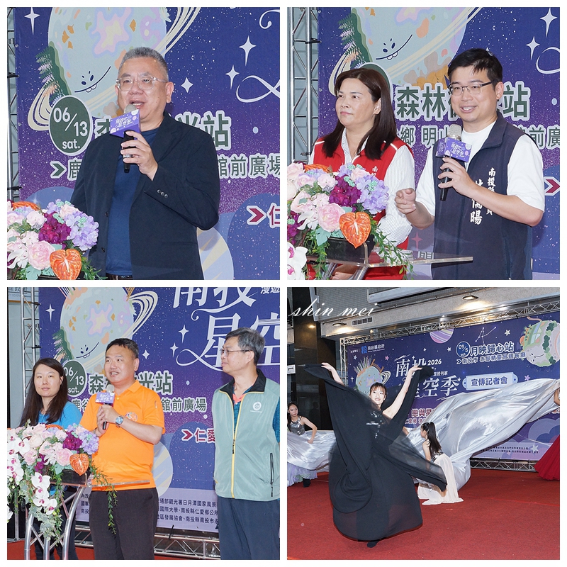 包括副縣長王瑞德、縣議員林憶如、林儒暘、清境農場場長王仁助、縣內各觀光旅遊發展協會代表多人都到場共襄盛舉,並一起啟動星投列車,象徵星空季活動正式展開。記者會中也由承辦4場次活動的東埔溫泉觀光協會、太極美地發展協會、清境觀光協會及至善文化關懷協會等代表上台展示宣傳。