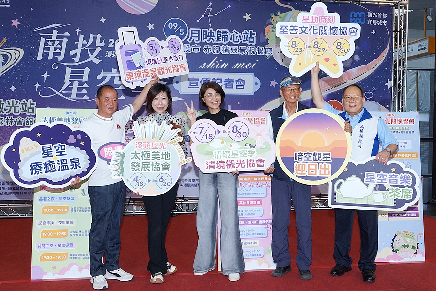 另外,還有一連串「深入在地特色的文化體驗」,主題日也根據季節、節日推出限定內容,包含與「香火鼎盛的月老廟七夕聯名」、「森林創意茶席品茗」、「中秋賞月野餐」等多項亮點,呈現南投多元且層次豐富的夜間旅遊樣貌。各場活動皆設有特色市集,結合在地農特產品、文創商品與旅宿業者,並安排專業天文團隊進行望遠鏡觀測與導覽解說,提供完整觀星體驗,活動亦採多元報名機制,並優先保留名額予住宿旅客,鼓勵深度旅遊。