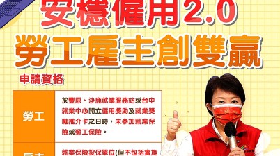 台中市 振興就業「安穩僱用計畫」延至明年底!