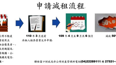 紓困加碼!台中市府減收 市有非公用 不動產租金50% !