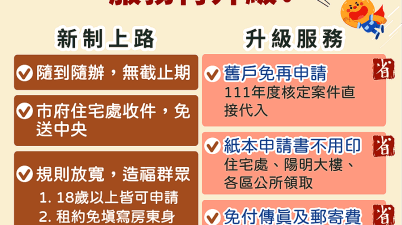 300億元中央租金補貼7/3開辦-中市住宅補貼再升級 !