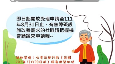111年台中市「住宅無障礙」設施改善補助申請 !