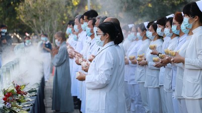 台中慈院戶外浴佛 防疫中祝禱疫情消弭 !