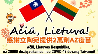 感謝 ! 立陶宛政府 提供2萬劑AstraZeneca 疫苗 !